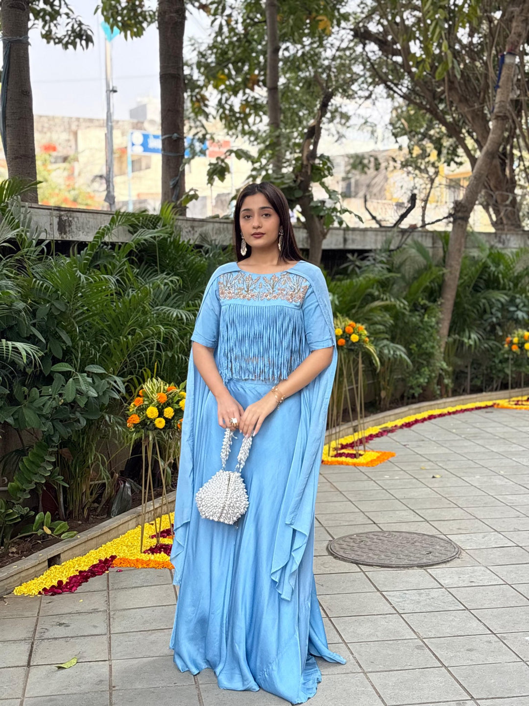 Dusty Blue Jardosi Skirt Set
